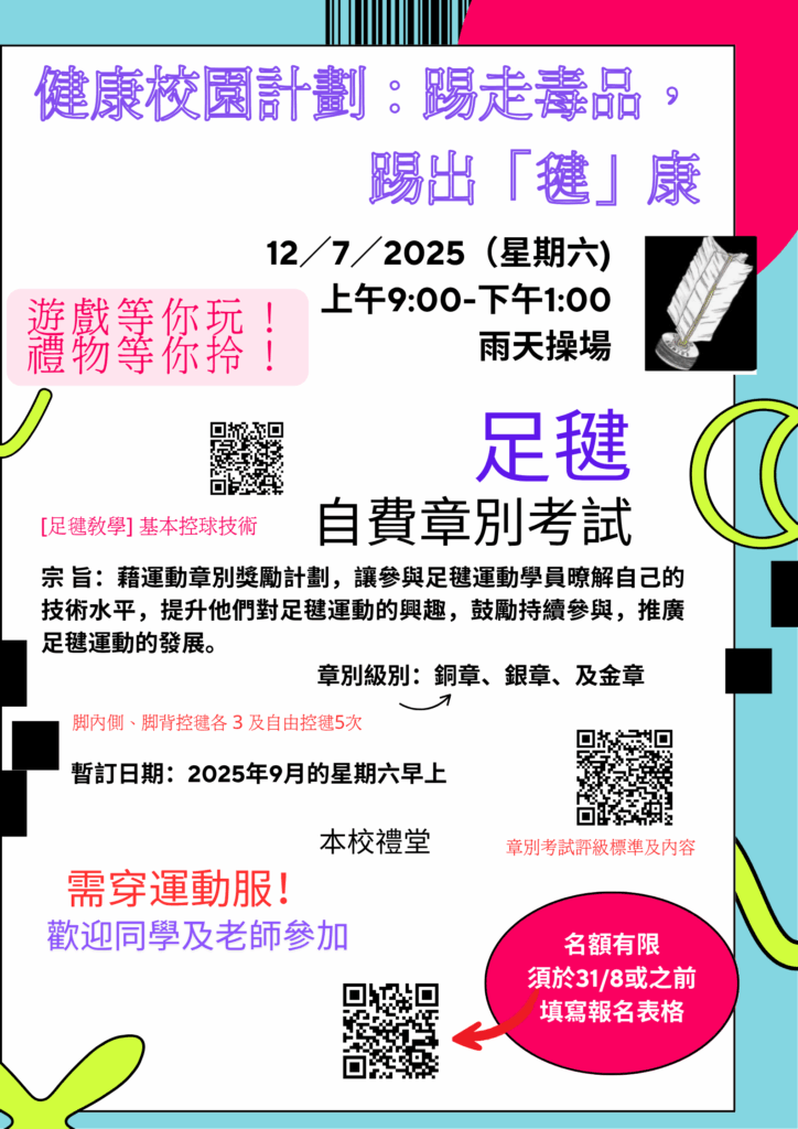 閱讀周將於2026年3月2-5日舉行,主題是「運動與閱讀」,已安排的活動暫有電影欣賞(包場)、書展、閱讀講座及運動素食工作坊等。現就讀同學參加閱讀活動是可以免費欣賞電影的。家長或畢業生只需付$60就可以觀看啦!